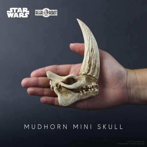 Like our other Mandalorian-inspired decor pieces, this mudhorn skull mini sculpture is ready to display and will bring some classic Star Wars style into to your home, office, man-cave, fan-cave… or even mud-horn cave today!
