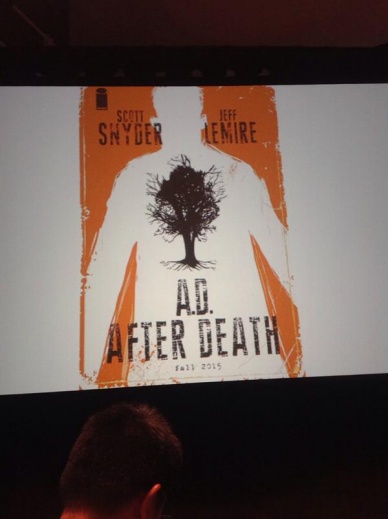 BFF’s Jeff Lemire and Scott Snyder are also announcing a new project! The book is called “A.D.” for “After Death”, and features Lemire on art. That’s a hell of a pairing, and something we’re very excited for. It tells the story of what happens when a cure for death is discovered. Too cool. It also appears to be an original graphic novel, which I love to see.