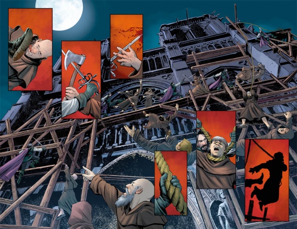 “I am indeed. Some of my favorites: early pre-Unity Valiant comics, in particular Magnus Robot Fighter, Turok, Archer & Armstrong — now that I think of it, these all have a pulpy quality that must have certainly informed Seven Swords. And of course, I have to tip the hat to Alan Moore’s original mashup, League of Extraordinary Gentlemen, which greatly inspired this book. Moore is also responsible for what I think is one of the greatest pieces of literature, illustrated or otherwise, his run on Swamp Thing in the mid-80s.”