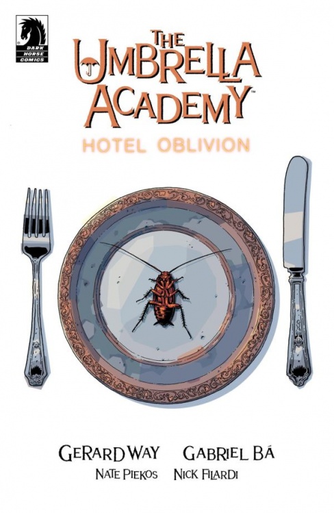 MILWAUKIE, Ore., (July 10, 2018)—The wunderkind brood returns in The Umbrella Academy: Hotel Oblivion! Gerard Way (My Chemical Romance, The True Lives of the Fabulous Killjoys, Doom Patrol) and Gabriel Bá (Two Brothers, Neil Gaiman’s How to Talk to Girls at Parties) will return to their Harvey, Eisner, and YALSA award winning and critically acclaimed series with colorist Nick Filardi (Forbidden Brides of the Faceless Slaves in the Secret House of the Night of Dread, The Victories), and letterer Nate Piekos (Stranger Things, Briggs Land) signed on to bring more Umbrella Academy adventures to life! With a Netflix series soon to debut, the best-selling superhero series returns, stranger than ever—and our heroes’ pasts are coming back to hunt them.