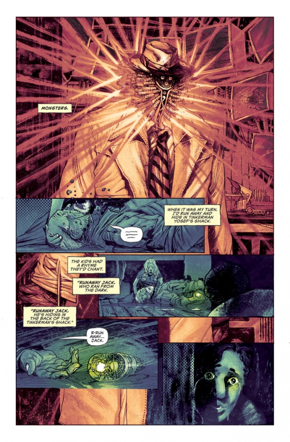 Then, (at 29:30 ) the Comics Syllabus is excited to preview an upcoming Image comic, “Paradiso,” with its writer, Ram V (at https://www.ram-v.com/ or https://twitter.com/therightram ). “Paradiso” features art by Dev Pramanik, colors by Dearbhla Kelly & Alex Sollazzo, and letters by Aditya Bidikar, and introduces a richly textured sci-fi story about a city of the future, a city vast and complex enough to be not only setting but character as well, as it seeks to understand its inhabitants. Ram talks to us about how his protagonist Jack Kryznan brings us into Paradiso City, breaking through its outer barriers and into its heart. Images that go with this in-depth discussion are below, and you can find “Paradiso” at https://imagecomics.com/comics/releases/paradiso-1 coming out December 6th, 2017 (so preorder at your local shops now!)