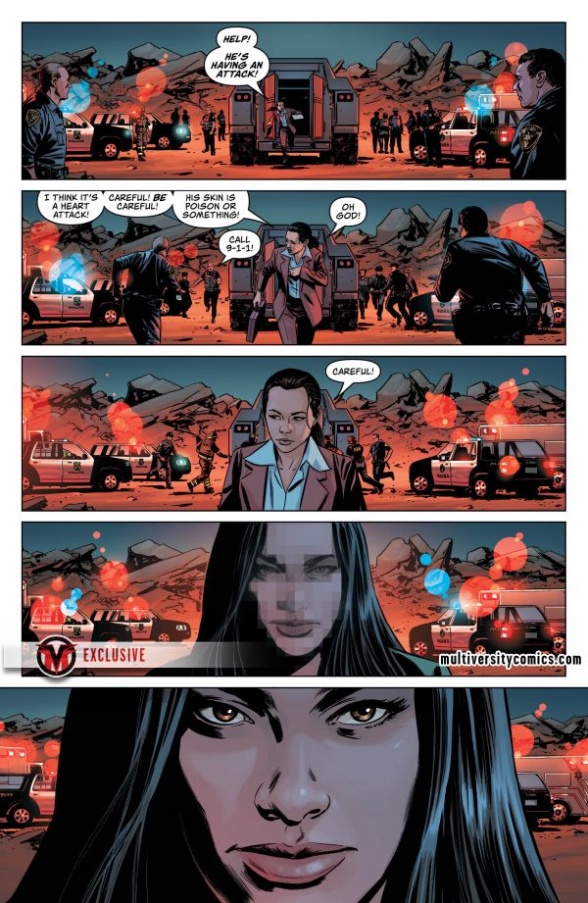 In the last issue of “Action Comics,” we saw an introduction of two new characters. Well, new from a certain point of view: Spyral agents Andi and Chaz, aka Lois Lane and Clark Kent, replete with a sweet beard for Clarkie. This month, we get to see Andi and Chaz in action (pardon the pun), as they try to unravel the mystery at the heart of the clandestine agencies of the DCU. We are thrilled to share an exclusive first look at the issue, which hits stores on April 24th.