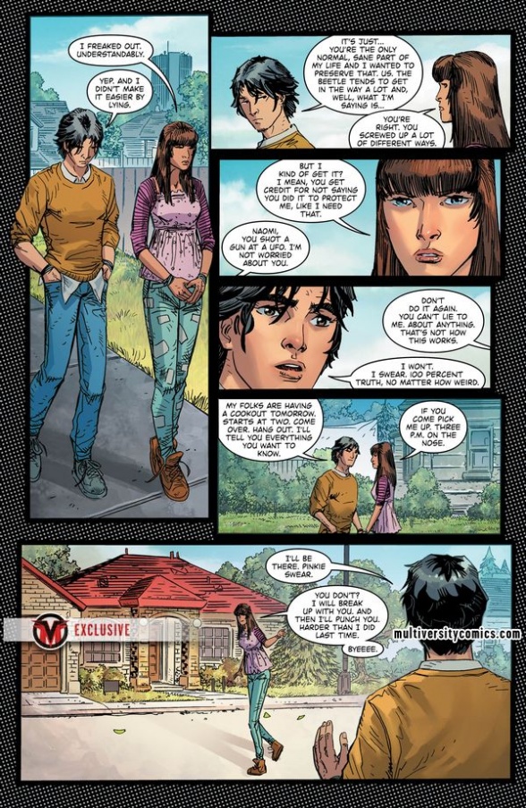 Add to that the always dynamic work of Scott Kollins, and the past few issues have seemed like a breath of fresh air. Sadly, they are the last of this volume, but hopefully not the last we’ll be seeing either Beetle. In the spirit of hopefulness, we share an exclusive preview of the series’ final issue, which hits stores on February 28th.