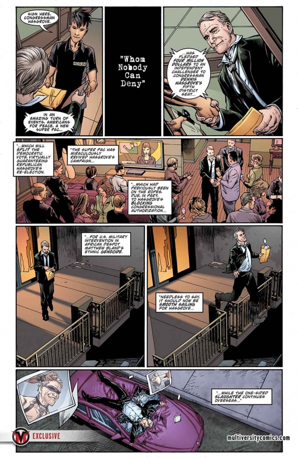 “The Professional” part one! Deathstroke’s latest contract takes him to a war-torn African country, where he finds himself caught in the middle of a disintegrating alliance between a ruthless dictator and a deadly super-villain. With an entire nation at stake, Slade Wilson must choose between fulfilling his contract and saving an old friend.