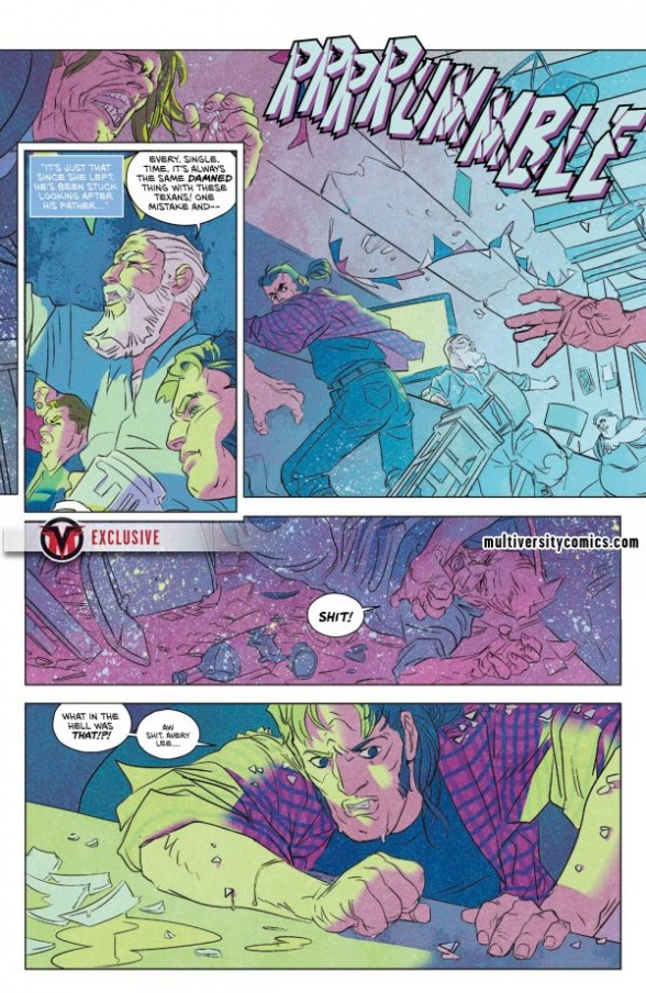 “Fissure” is a political sci-fi title from writer Tim Daniel and artist Patricio Delpeche. We interviewed Daniel about the book ahead of its launch, and he did a great job setting up the series. The book recently concluded with its fourth issue, but the trade paperback collection is due out on Wednesday. So to entice you to pick up the collection, we’ve got the full first issue to read for free!