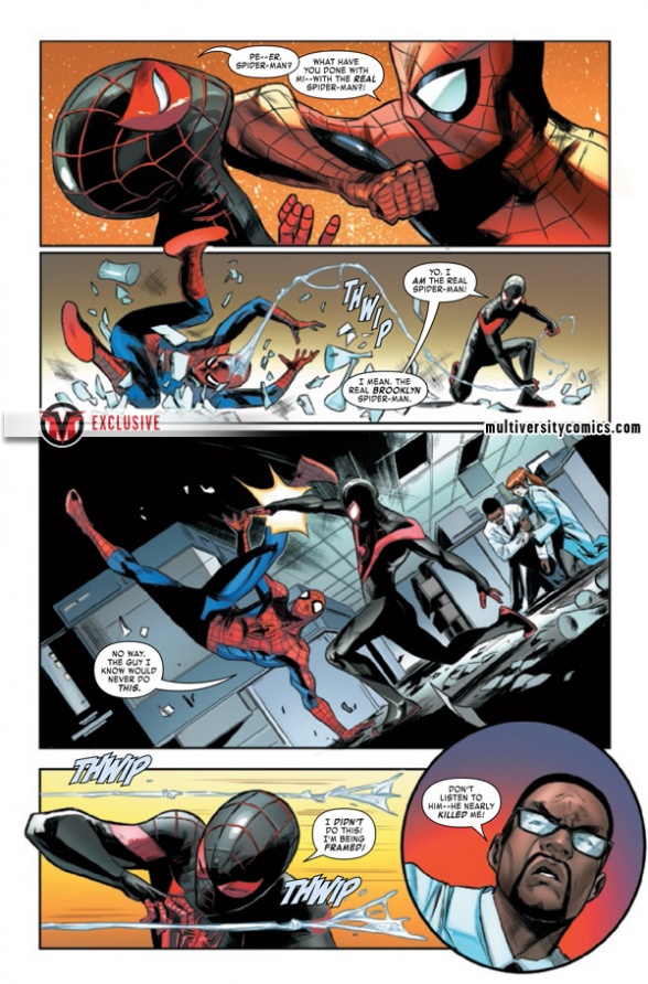 The ‘Clone Saga’ — the very name sends a shiver down the spine of every devout Spider-Man fan. And now, Miles Morales, the young Spider-Man, is about to get a taste of the panic and confusion Peter Parker went through (twice). We are pleased to present an exclusive preview of next week’s “Miles Morales: Spider-Man” #25, which marks the culmination of everything writer Saladin Ahmed has been building to since the start of his run.