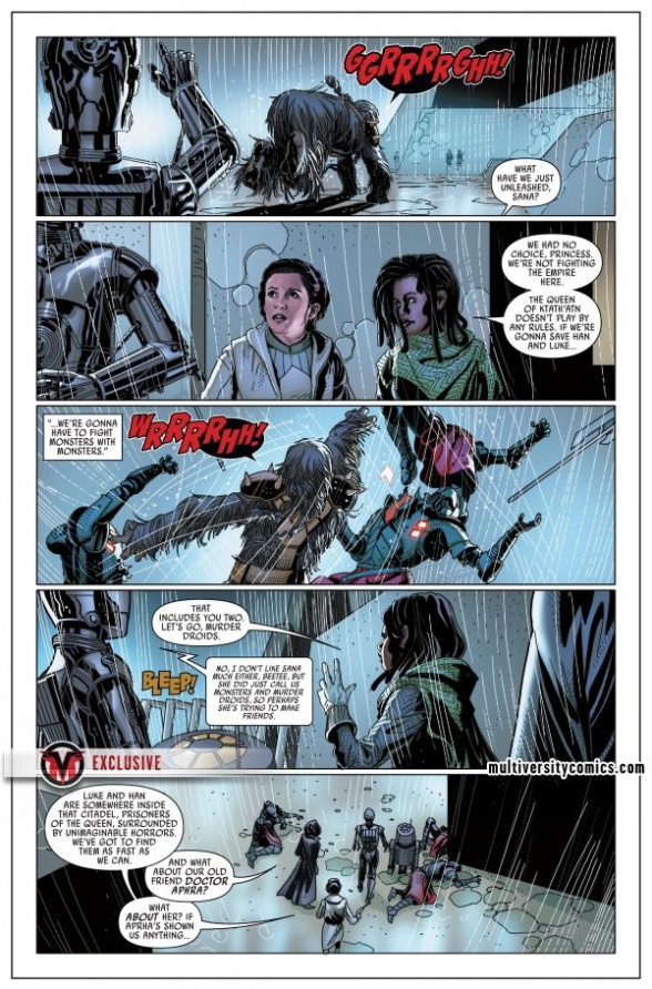 ‘The Screaming Citadel’ crossover is in full effect between “Star Wars” and “Doctor Aphra,” which our own Alice W. Castle recently ran down in our new ‘Tales From A Galaxy Far, Far Away‘ annotations column. Part four of that crossover hits next week, and we are thrilled to share an exclusive first look at that installment, “Star Wars” #32, right here!