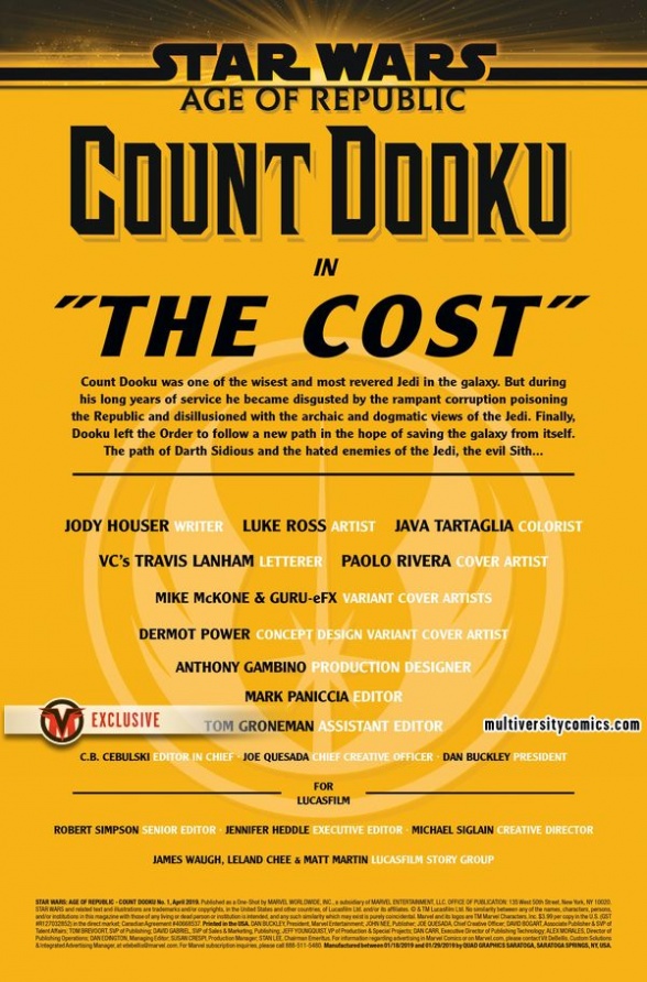 But, luckily for us, the films are never quite the end for Star Wars. Jody Houser (“Faith,” “Doctor Who: The Thirteenth Doctor”) and Luke Ross (“Star Wars: Thrawn,” “Iron Man”) are telling a new Dooku tale as part of the ‘Age of Republic’ one-shots from Marvel. We are thrilled to share an exclusive preview of the issue, due out on February 13.