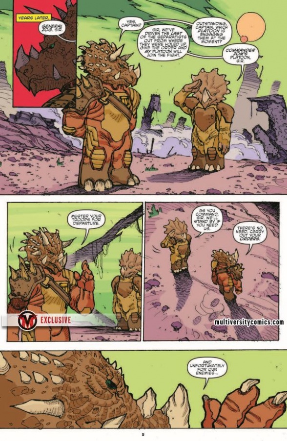 “TMNT Universe” has been a really nice addition to the IDW Turtles-verse, allowing sidestories and supplemental material to have a showcase, alongside the main title’s story arc. However, rarely has the book been quite as tuned into the main-“TMNT” story as issue #16, which comes out on November 22. This issue features the Triceratons, who are also the subject of the main “TMNT” story right now.