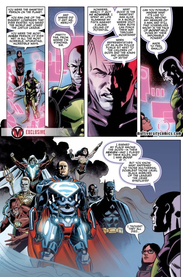 Lettered by Travis LanhamThis is it! Lex Luthor has gathered a strike force of villains he’s leveled up to be the baddest bad guys around-Captain Cold, Oracle, Solomon Grundy, Black Manta, and Lobo, each and every one a recipient of one of Lex’s dark gifts.