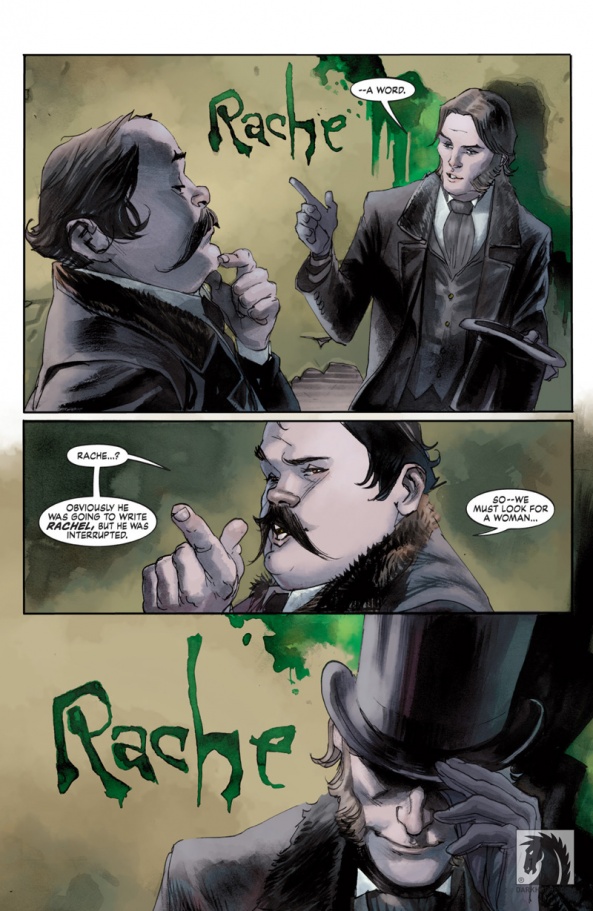 Bringing this story to life within the four-color page is Rafael Albuquerque & Dave Stewart. The artwork is moody and subtle, opting for darker grey tones which serve as a perfect backdrop for the intense colorful splashes that highlight the story’s high points. Without falling into pre-established Victorian tropes, the pair creates a tight setting for the story which instantly transports you to the late 19th century. Further, their treatment of the supernatural characters bring with them a truly creepy, and sometimes evil sense. It is impossible to denote that a particular art style can perfectly match a story, but in this case it certainty feels like they are impeccably joined.