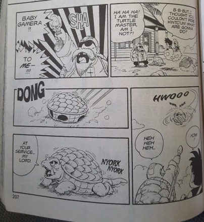 The capsules are called Hoi-Poi capsules, because that’s the sound effect that accompanies them. Side note: I do not know if they were called anything else. If they were something different, please do not eat me. I only go by what the translators use. Gamera, the flying turtle associated with Godzilla, becomes a method of transportation. Literally everyone who wants to use the dragon balls wants it for something trivial and silly (a boyfriend, to not be afraid of girls, fresh panties, etc.). The boat’s sound effect is BOOOOAAA**T!