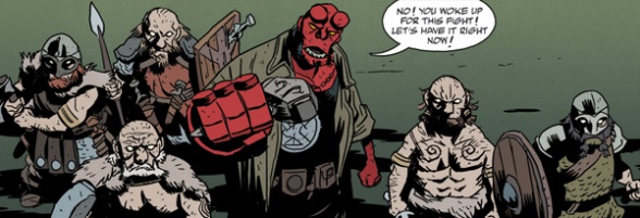 James: Yeah! Clem Robins is so good at translating the tone of a moment into the lettering he uses, which is great for drama and comedy. I really like how he uses the overwrought, fantastic voice of Thor to show how he pops out to rally the Nidavellim during Hellboy’s big call to arms.