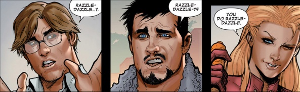 Here’s the intriguing bit: the book does seem to take a few cues from the earliest days of Bendis’ work with the Avengers teams. The celebration of the banal aspects of their lives (such as the breakfast making), the snappy dialogue that’s almost too witty for your average person to say (but in a good way, not an over-done Sorkin fashion) and the chemistry between the teammates is fairly palpable, which is important given the switching of the roster. This is the stuff that stands out so much in some of Bendis’ best “New Avengers” stories, truthfully. And yet, as much as the book feels like a logical predecessor to some of the more fun of Bendis’ stories, a more accurate description of the book would be that DeConnick is “getting her Whedon on,” so to say; that is, she’s channeling the heart that Whedon always manages to infuse into his groups of characters, and she’s making it work for her — and if this book is for people who saw the Avengers, then that’s perfect! We’re given a book with a team that feels like they want to work together, to the extent that at a certain point it’s easy to get lost in the story and forget that this is a fictional comic, not a pictorial representation of events that actually happened. That’s how real these people suddenly feel, and that’s all DeConnick’s excellent recording of their dialogue.