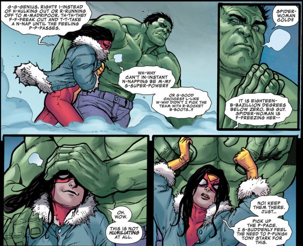 One could argue, however, that perhaps a little too much emphasis is given into the characters and not enough into the world. That, to a degree, is fair; as with the examples above, we’re given a lot of focus on character close-ups and not too much on their world, which fits considering a large part of the book takes place solely within Avengers Tower and the personal character interactions within before moving to an icy/dreary landscape. However, the few situations that open the setting up beyond just that limited scope (such as with the STAN Speakers — get it? — opening segment) are all examples of Caselli stretching his wings a bit, giving a slight tease of what we can expect from the immediate future: big moments illustrated on a grand scope, with a mix of optimism and pessimism based on the characters involved. If that’s not a great and blatant tease of what to expect from the book as it rolls forward, I don’t know what is.