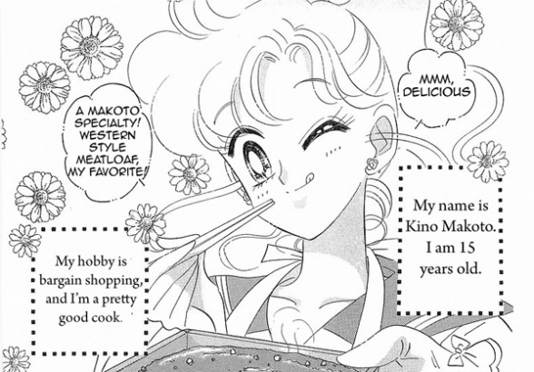 ‘Mako-Chan’s Melancholy:’ Jupiter kicks this series off dreaming about greeting her future husband as he returns from work with a hot meal, a reminder that, despite (or perhaps because of) her brawny exterior, Makoto Kino wants nothing more than to be a domestic goddess. Unfortunately, she struggles with having to study instead, and procrastinates by preparing large (deliciously drawn) meals and tea for her friends before they come over to study, shopping for new furniture, and cleaning.