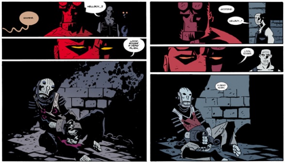 Mark: Yeah, I think I made a comment in one of our earlier issues about how the title’s meaning shifts as you read the series. And really, that’s this whole comic. It changed in some very unexpected ways. It may be a strange comment to make, but I liked how small it ended up being. I mean, the climax of the story is simply a conversation between the Visitor and Hellboy. Yeah, it’s a conversation about grand things, but the emotional element beneath it was smaller and closer to home.