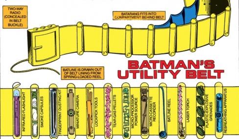 Brian’s commentary: Imagine how small and ineffective, or how unbelievably dangerous, that laser torch and grenades are? There’s no way those aren’t totally useless, or made of such compressed danger that Batman is walking around with a nuclear reactor just above his dick.