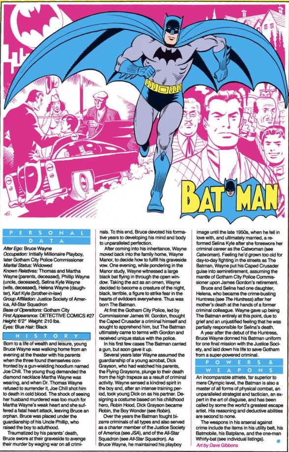 Brian’s commentary: Pre-“Crisis” DC was a trip. Also, it is nutty that neither Batman’s entry mentions Alfred.