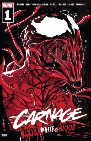 “Carnage Red, White, & Blood” #1 is an anthology issue where three different writers and illustrators get a chance to tell a short story with Carnage as the main character. The first story by Tini Howard is the only one that seems a bit out of place, not because of the subject of a romantic story between Carnage and Shriek, but due to the fact it seems like a glimpse into an issue rather than an entire story on its own. Carnage telling the love story to Cloak gives the reader the knowledge of jumping back-and-forth time wise, however once it converges at the end it can be confusing. Then the fight between Carnage’s team of villains and other known superheroes seems more open-ended than probably intended.