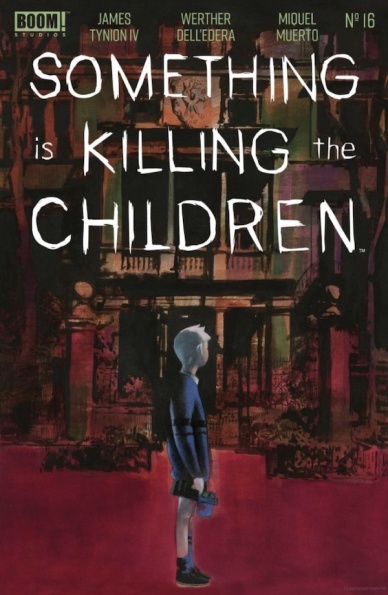 Visceral imagery, combined with a solid narrative make “Something is Killing The Children” #16 a superb comic. There’s solid echoes of Kingsman and Buffy in this story about a young girl inducted into a secret society of highly trained monster slayers. The narrative by James Tynion IV picks up with the girl, Erica, covered in blood and surrounded by the corpses of her friends and family. It’s a brutal intro, skillfully drawn by Werther Dell’edera and Miquel Muerto. The grim dark crimson shade of the blood and the unseeing eyes of the corpses are spectacularly unnerving. “Something is Killing the Children” #16 grabs from the first panel and doesn’t let go.