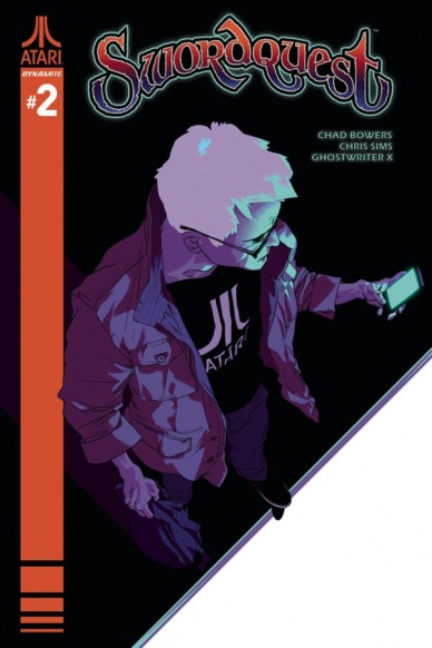 Cosmic crackle rips holes through space and time as Chad Bowers and Chris Sims posit an alternate history for “Swordquest” #2’s namesake – okay, technically Peter and his childhood crew are plotting a heist for the sword, not a quest, but close enough. Sitting around a kitchen table, the friends listen as a stranger sips coffee from a #1 Mom mug and recants the creation myth of the mystic realm, Atara.