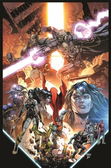 The Darkseid War continues to be waged with shocks and excitement aplenty in “Justice League” #44. In this fourth part of Geoff Johns’ epic story, the combination of the world of the New Gods and the Justice League retains its momentum toward the stratosphere. Johns’ interpretation of Gods new and old will have people who recognize these characters cheering or gasping (or both). New readers will be just as mind-boggled as well. Johns has a deep love for the League and Kirby’s creations and it shows in his reverence of as well as updating of lore. We’re only into the fourth part and it already seems like a lot of crucial and world-changing events have already happened. This issue, like the previous ones in this storyline, is both epic in nature and very personal. We worry about these characters and delve into their minds as if we’re with them on this harrowing journey. And what could be more exciting than seeing Darkseid and the Anti-Monitor clash? Maybe that shocking last page?