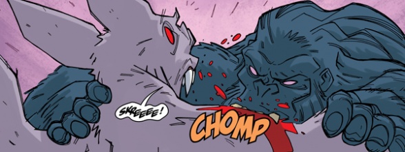 I think the capper for me was when Un-Gaaah bit Vesperra and the whole panel becomes flooded with Un-Gaaah’s palette. It’s an image that immediately says Un-Gaaah has won.