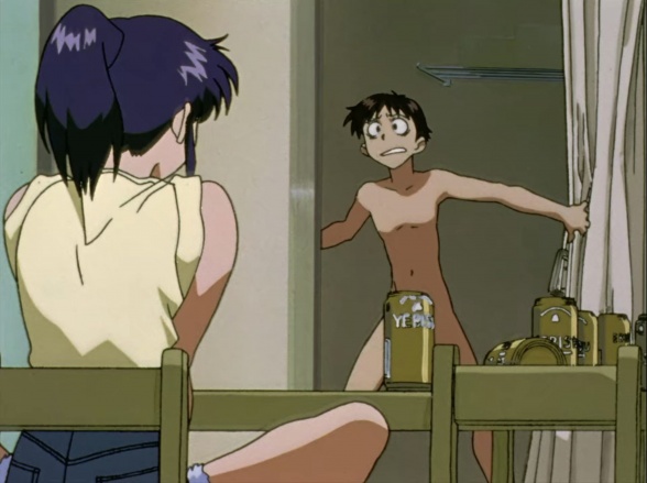 Continued belowIt’s not all just for the spectacle, either. Anno spends as much energy delivering a joke. The beer can gag remains golden. Misato’s unhinged behavior in her apartment is goofy, almost like it’s making fun of the idea of fan service while still very much being a piece of fan service.