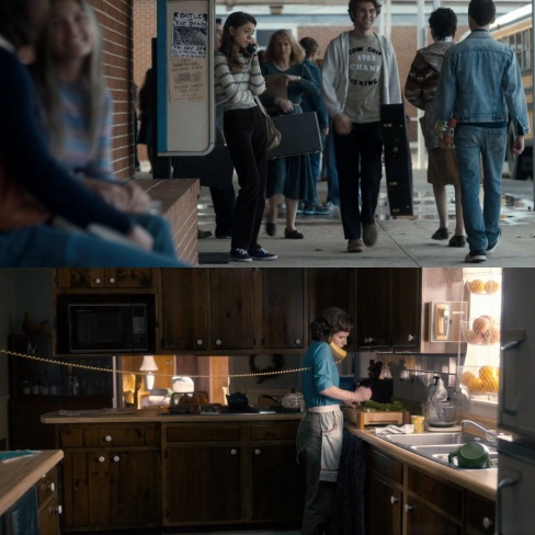 Let’s focus on the scene where Nancy calls Barb’s mom for a bit: think about how much effort was spent on recreating the ’80s for this character who only appears once this season, from her make-up, hair, and costuming, to finding and dressing an appropriate house, complete with a clunky dial phone. I wonder if there was a conversation about only showing Nancy’s side of the conversation to save money, but it was worth it because it made the scene feel real and natural, as if Mrs. Holland could return onscreen later in the season.